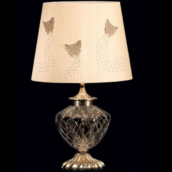 Диаметр 40, высота 70 см. [~DETAIL_TEXT] => Светильник настольный. Отделка арматуры - серебро + муранское стекло, рассеиватель - текстиль, декор - стразы.
