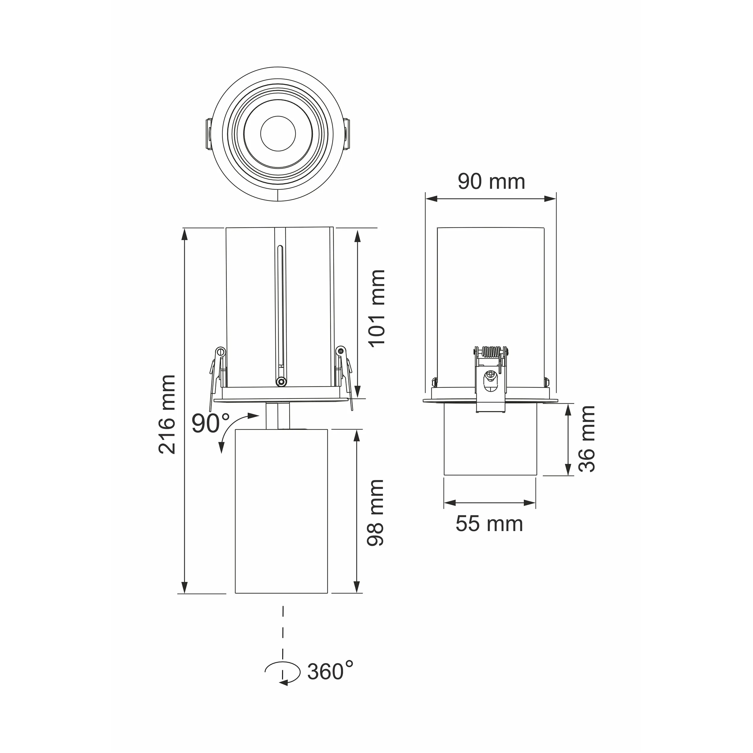 Встраиваемый светодиодный спот с выдвижным механизмом, белый, 220V, 15W, 3000K, 1300Lm, 36°, CRI>90, IP20, Ø монтажного отверстия 65 мм, макс. высота в выдвинутом положении 115 мм, мин. высота в выдвинутом положении 36 мм, высота запотолочной части 101 мм, высота плафона 98