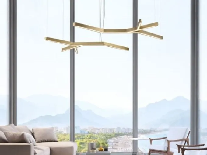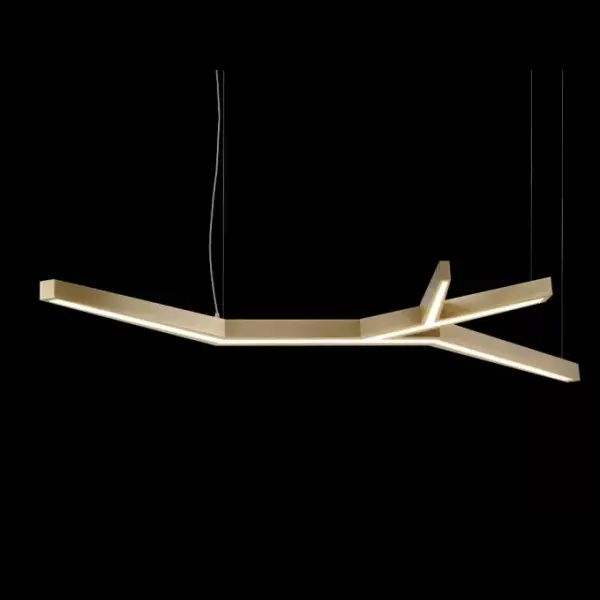 Минималистичный дизайн с лесным мотивом привлекает внимание к деталям конструкции. Каркас с отделкой в цвете матового золота выполнен в виде ветви дерева, но благодаря угловатой форме, светильник выглядит современным и даже немного футуристичным. В качестве плафона использована пластина из метакрилата, рассеивающего свет. Внутри по стволу и небольшим веткам встроена светодиодная лента, излучающая теплый мягкий свет.