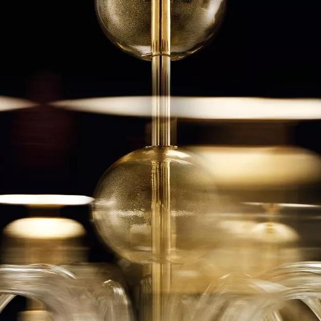 Большие венецианские хрустальные сферы являются отличительными элементами коллекции Vermont. Благодаря своему горизонтальному и вертикальному расположению они создают воздушное и в то же время драгоценное хрустальное облако.