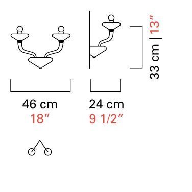 Двухрожковое бра с изящными изогнутыми ручками, которые выдвигаются из центрального корпуса. Чашечки-держатели для ламп всегда матово-белые, с абажуром, оттенок которого совпадает с оттенком ручек.