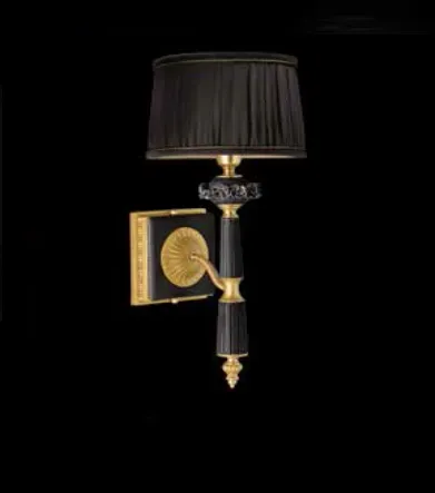 [~DETAIL_TEXT] => Светильник настенный. Отделка арматуры - золото, декор - фарфор черного цвета, рассеиватель - текстиль.