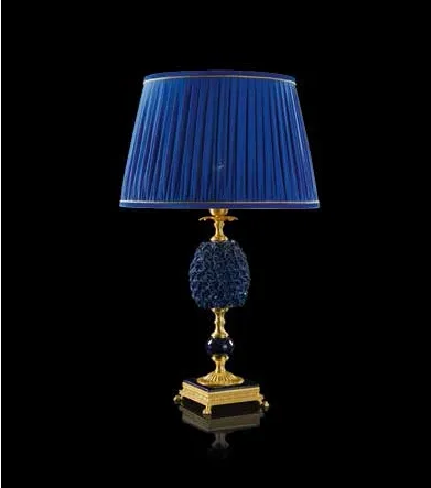 [~DETAIL_TEXT] => Светильник настольный. Отделка арматуры - золото, декора - фарфор синего цвета, рассеиватель - текстиль. Диаметр 38, высота 61 см.
