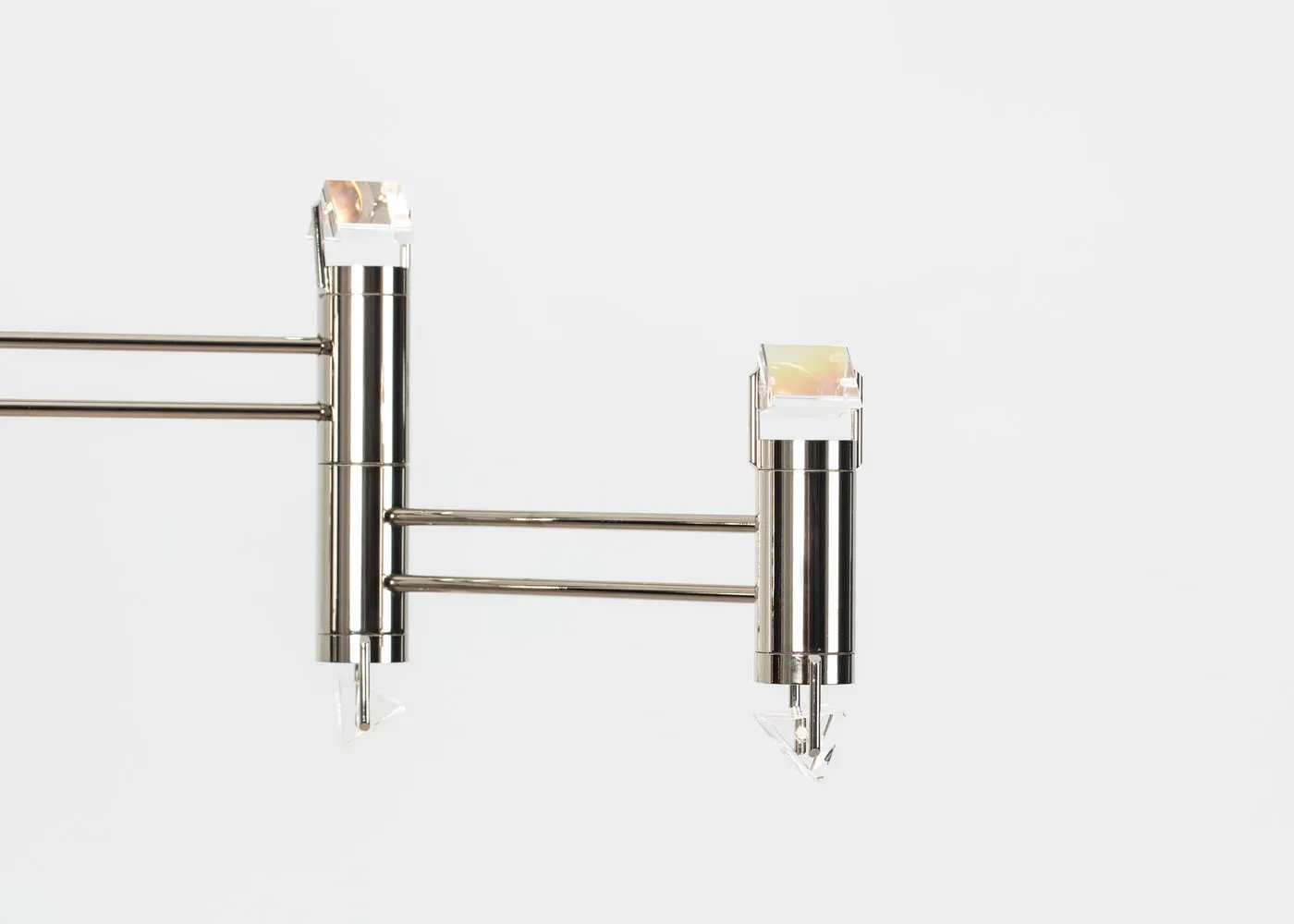 Основание алюминий цвет матовая латунь, матовый никель, полированный никель, темный оловянный, нефтированная бронза. Призма прозрачное стекло.