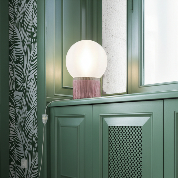 Бахрома, напоминающая платье девушек, танцующих чарльстон, украшает цилиндрическую основу светильника Atmosfera Fringe . Вершину конструкции венчает сфера ручной работы, которая испускает мягкое свечение. Лампа управляется простым переключателем, что весьма удобно.