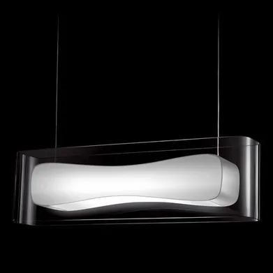 Подвесной светильник с двойным рассеивателем из плексиглаза  и металлической хромированной арматурой.