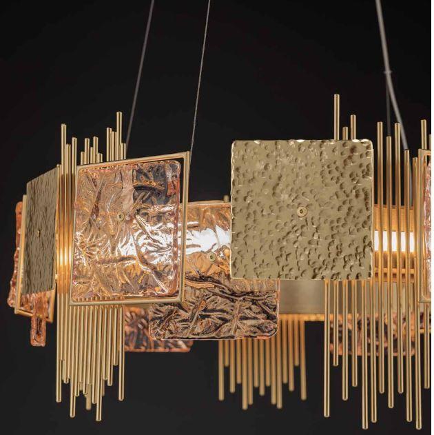 Квадратные подвески из стекла с эффектом волнистости, изготовленные в Венеции.