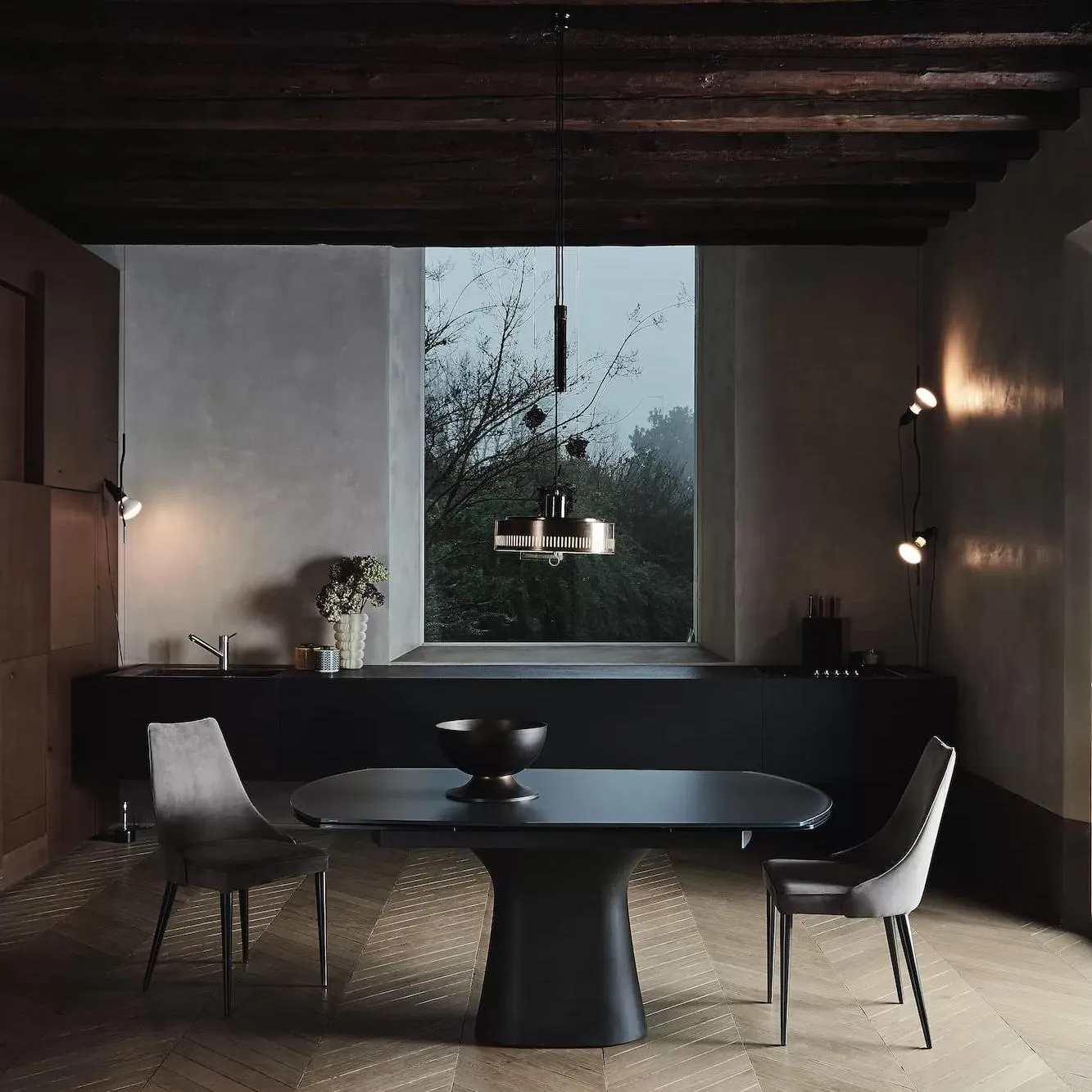 Стул с лакированным металлическим каркасом, сиденьем и спинкой, обитыми экокожей премиум-класса, тканью Bouquet, тканью Gourmet, тканью Nordic, натуральной шерстью, бархатом высшего качества и кожей Nappa Премиум-класса, также доступно в варианте со стеганой спинкой (только для ткани Nordic и кожи nappa премиум-класса). Версия со стеганой спинкой (только для скандинавской ткани, экокожи премиум-класса и кожи наппа премиум-класса).