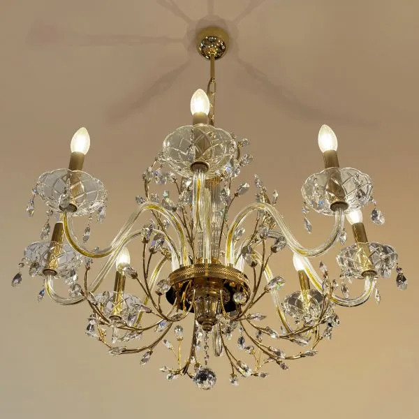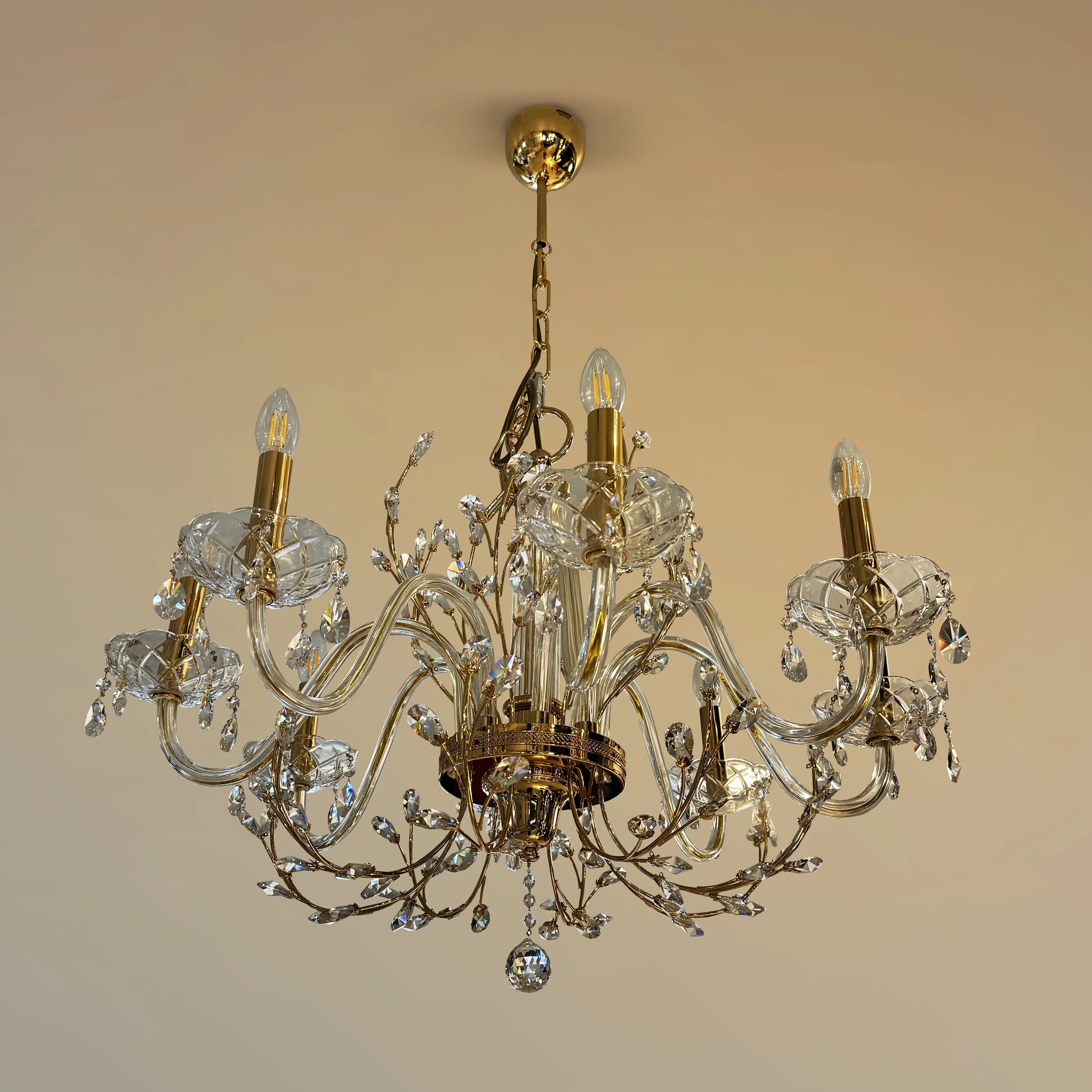 Люстра Diva /8/A/24K от Prearo - это элегантность и роскошь классического стиля в освещении. Металлический корпус светильника окрашен в золотистый цвет и украшен бесчисленным множеством хрустальных декоративных элементов. Подвески, кристаллы, изящно изогнутые трубки - все это притягивает взгляд и завораживает бесподобной игрой света. Люстру украшают 8 “свечей”, которые испускают яркий и уютный свет.