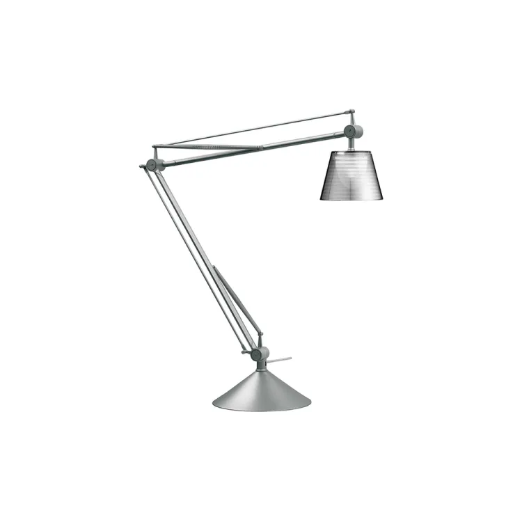 Декоративная настольная лампа Flos Archimoon K создана для организации акцентированной подсветки в кабинете, спальне и иных комнатах. Светильник Archimoon K подходит практически к любому интерьеру. Archimoon K имеет регулируемое положение с фиксаторами возле основания плафона и на ножке. Основание также вращается. Настраивается наклон плафона, сгибающаяся ножка и поворот основания. Серебристый корпус великолепно гармонирует с прозрачным рассеивателем, на который нанесен рисунок в виде зеркальных линий. Свет лампы Archimoon K мягко падает на поверхность, эффективно освещая пространство.