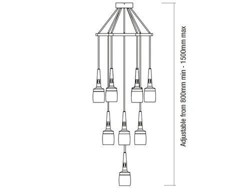 Люстра Flagon с эффектной отделкой из латуни, инкрустирована черными и белыми вставками. Толстые стенки плафонов в виде «виски-бокала» выглядит очень привлекательно. Десять плафонов осветят обеденный стол, прихожую или лестничный проем.