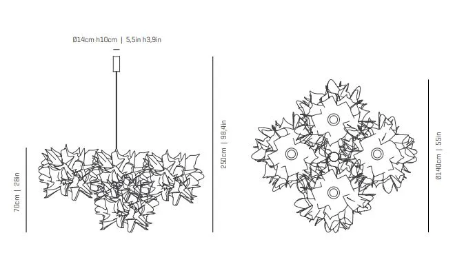 Fluo Compo medium - это легкая форма, которая создает иллюзию парообразной ткани, похожей на полупрозрачный тюль, который одновременно раскрывает и скрывает, играя с интуицией наблюдателя. Легкость этого дизайна ручной работы, получившего награду Good Design Award в 2009 году , усиливается в более крупных композициях коллекции.