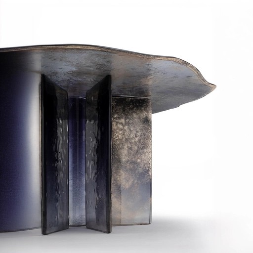 Мебель ручной работы. Столешница и ножки из двухслойного запечённого стекла с неровными краями.