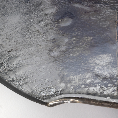 Изделие полностью покрыто лаком с оттенками от тёмно-синего до прозрачного, с частичным серебрением на обратной стороне.