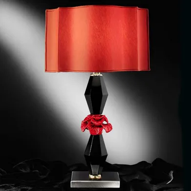 Ножка декорирована муранским стеклом черного и кораллового цвета.