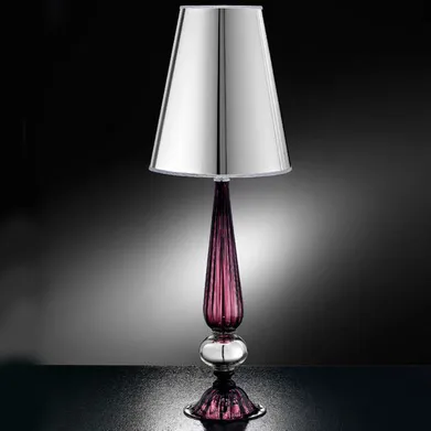 Ножка лампы выполнена из выдувного муранского стекла аметистового цвета.