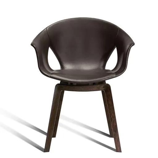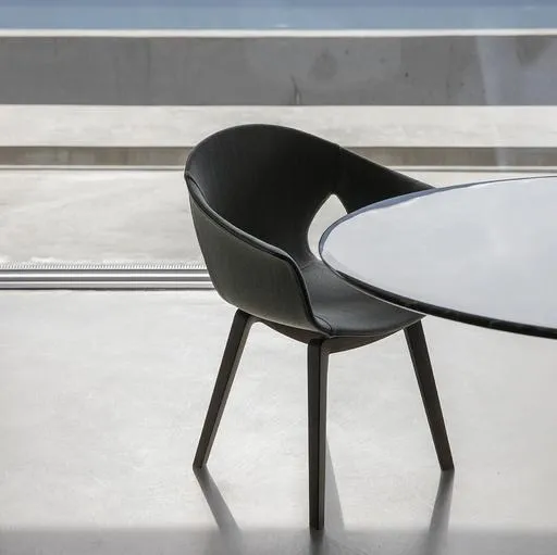 Основание кресла Ginger изготовлено из массива ясеня с крючковой опорой из окрашенной в черный цвет стали. Оно доступно в фиксированном или поворотном исполнении с механизмом “возврата”, который позволяет креслу поворачиваться на 360° и возвращаться в исходное положение.