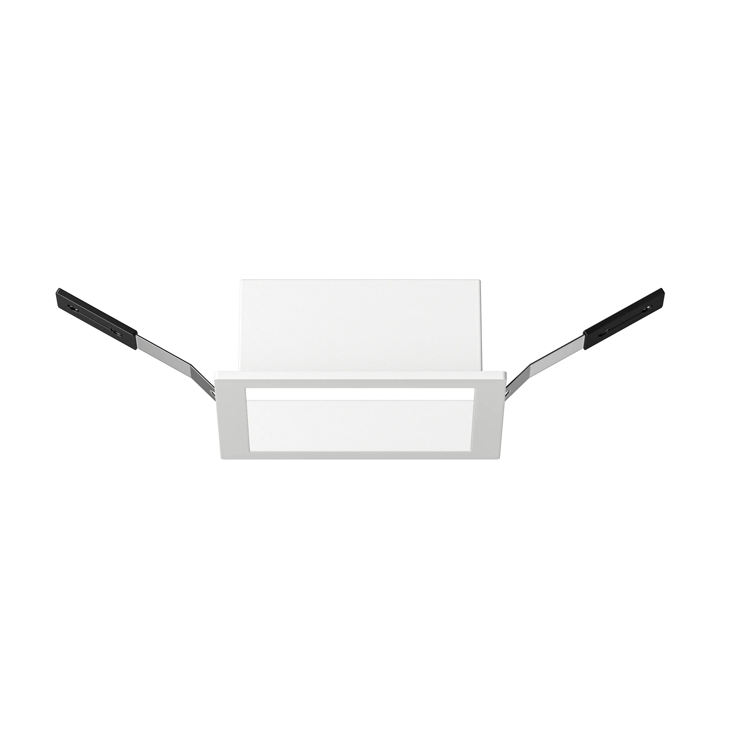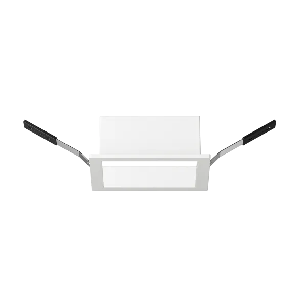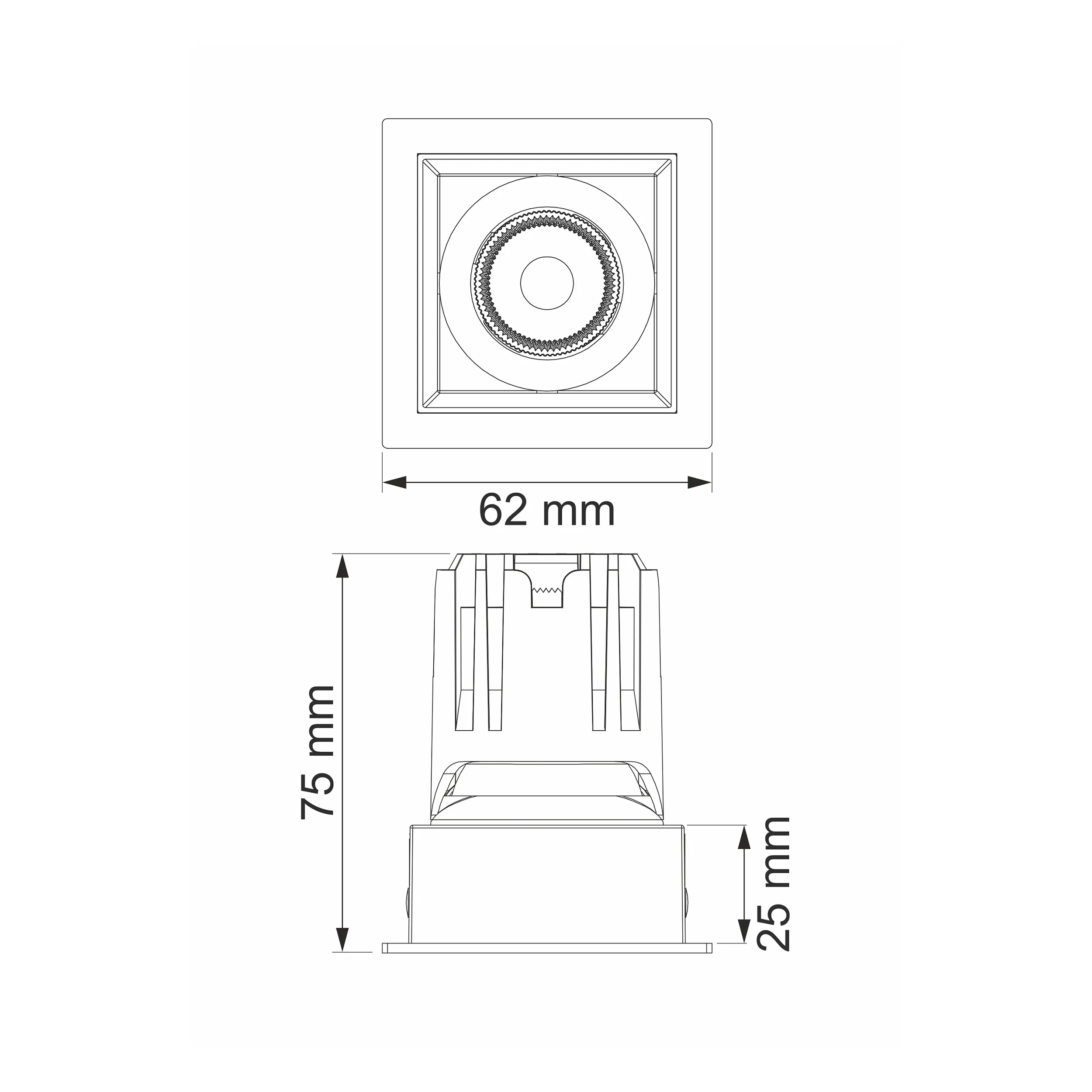 Каркас встраиваемый с видимой рамкой, квадратной формы, белый, монтажное отверстие (квадратное) 55х55 мм, размер видимой части 62х62 мм, высота (с установленным светодиодным модулем) 75 мм.