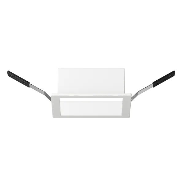 Каркас встраиваемый с видимой рамкой, квадратной формы, белый, монтажное отверстие (квадратное) 75х75 мм, размер видимой части 83х83 мм, высота (с установленным светодиодным модулем) 90 мм.