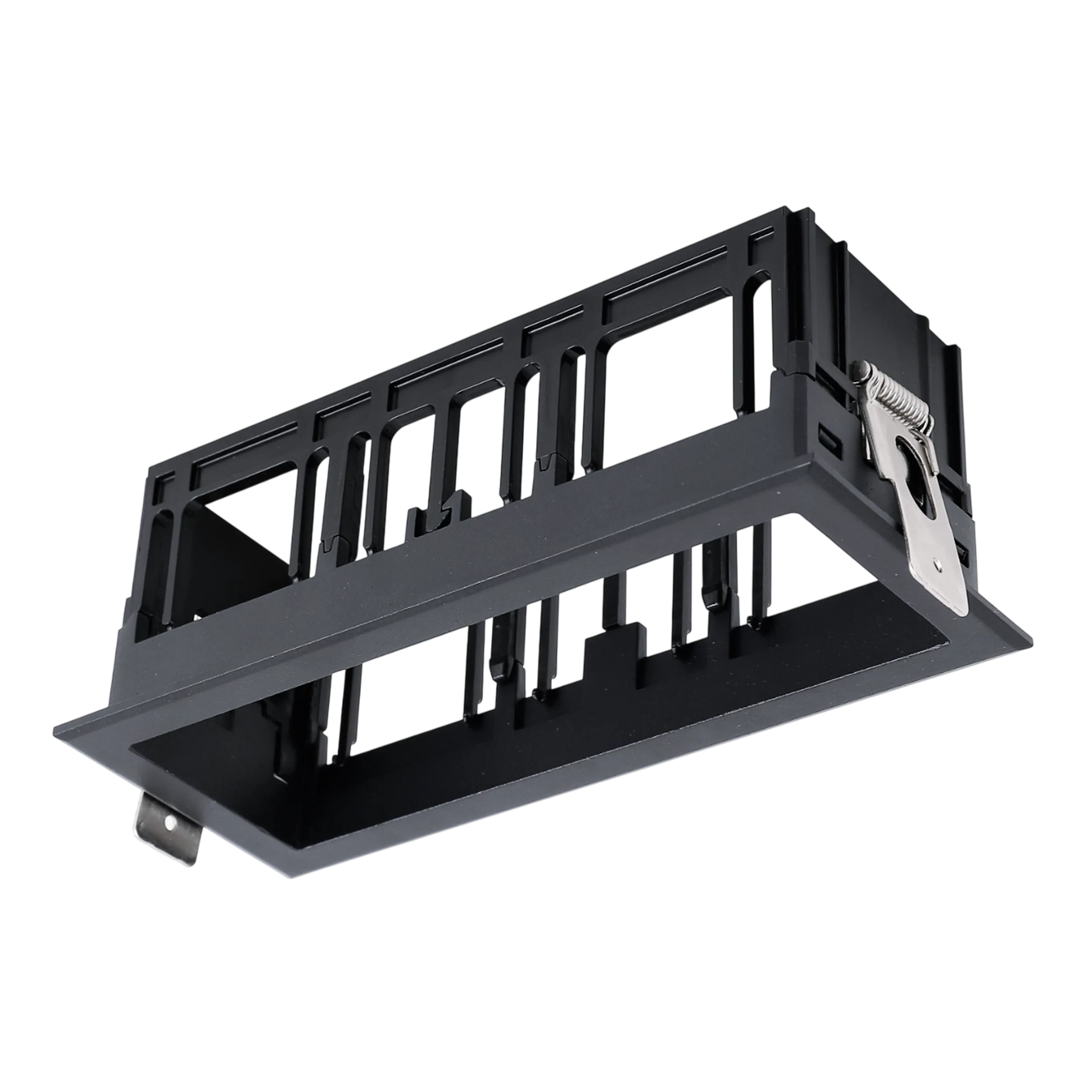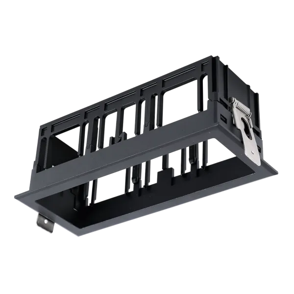 Каркас встраиваемый с видимой рамкой на 3 модульных светильника, черный, монтажное отверстие (прямоугольное) 145х55 мм, размер видимой части 153х64 мм, высота 65 мм