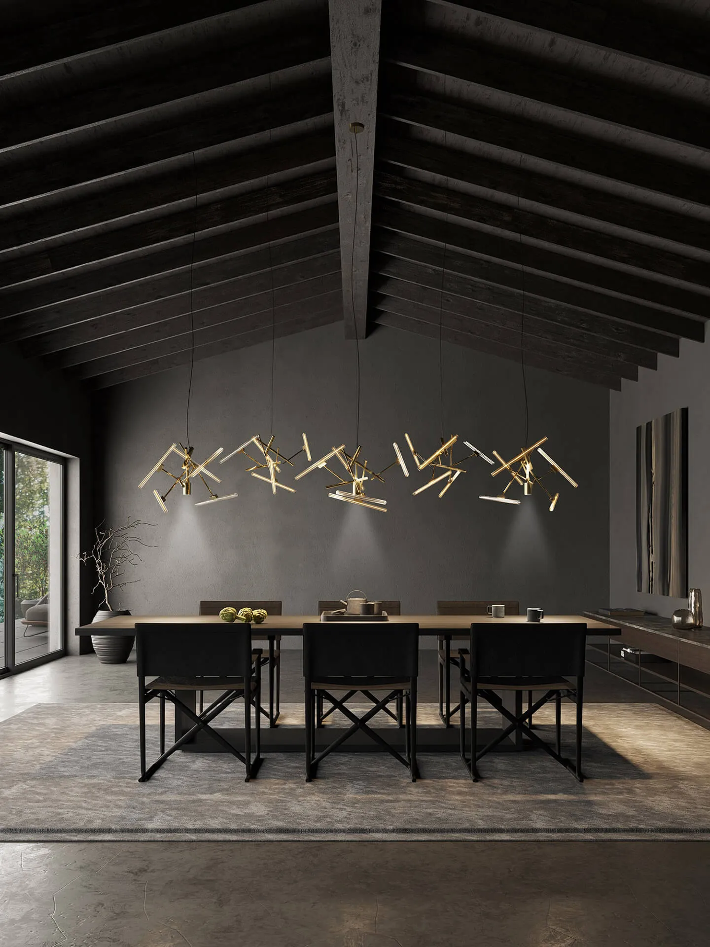 Четкие и динамичные линии люстры Linea похожи на застывший во времени вихрь из стали и света.