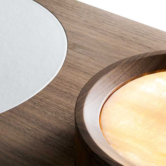 сверху, и второе основание из орехового дерева Canaletto со столешницей из оникса, доступно с подсветкой.