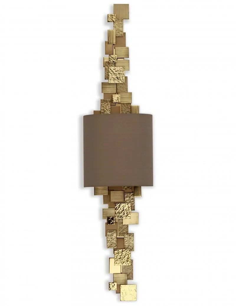 Настенный светильник LUCA WALL LIGHT - комбинация индивидуально выгравированных, вырезанных и текстурированных латунных пластин.
