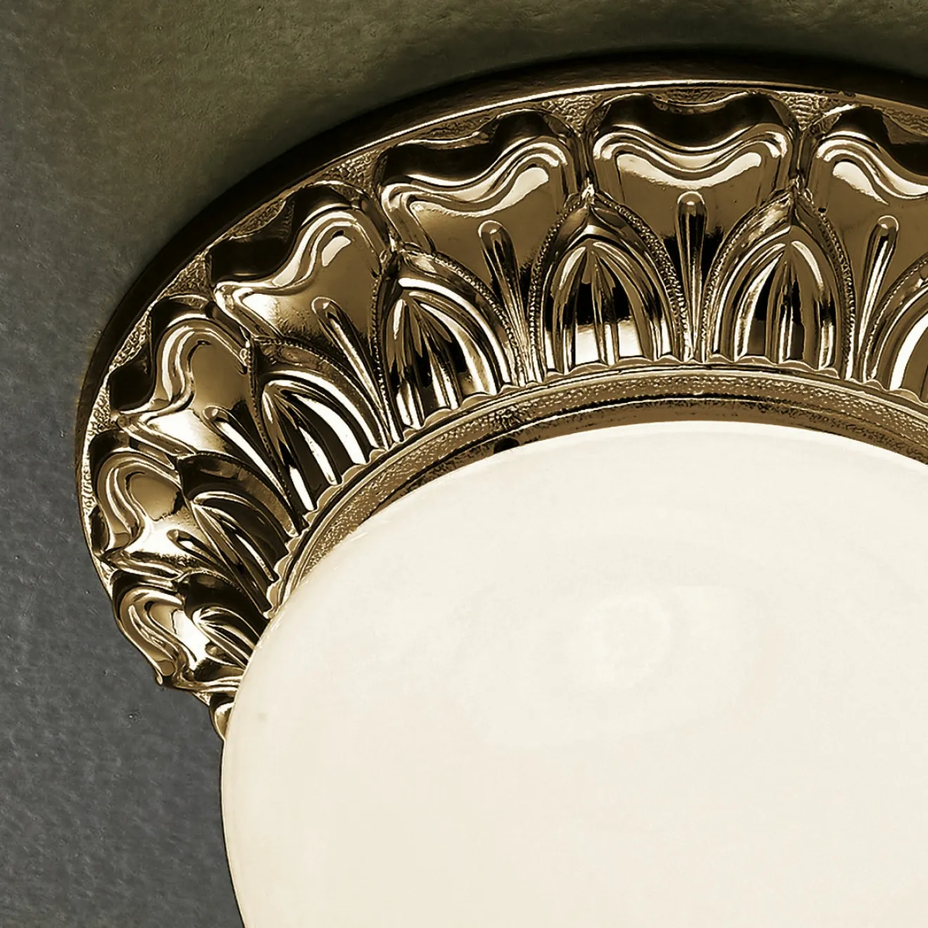 Тончайшие витражи в окружении изящных орнаментов. Неподвластное времени произведение искусства ручной работы в очаровательном классическом исполнении, идеально подходящее для прямого и непрямого освещения. Ностальгический вид, созданный изысканной старинной латунью.