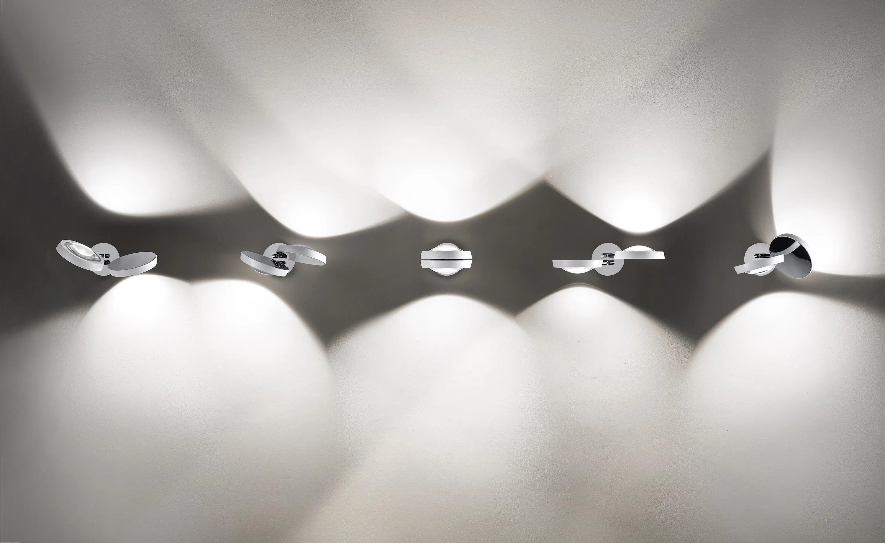 Настенный светильник NAUTILUS состоит из стенового крепления с двумя подвижными кронштейнами, на которые опираются светильники, каждый с выпуклой линзой и светодиодом LED. Светильник можно использовать как единый элемент для симметричного направления света в противоположных направлениях. Или, благодаря подвижности диффузоров, которые можно разводить в диапазоне до 90° и поворачивать на 320°, управлять двумя световыми потоками по отдельности.