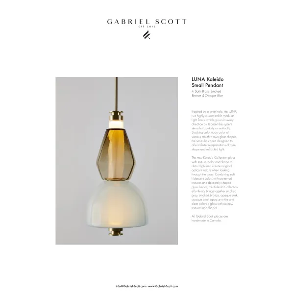 Модульный светильник LUNA KALEIDO SMALL PENDANT - это невероятное многообразие форм, текстур и оттенков, готовых соединиться в одном светильнике. Дизайнеры бренда Габриэль Скотт выпускают коллекции декоративных моделей светильников, оставляя возможность создавать окончательный образ нам. Лампа собирается из модулей по вашему вкусу, подробнее о комплектации вы можете узнать у менеджеров салона дизайнерского света Лампадарио.