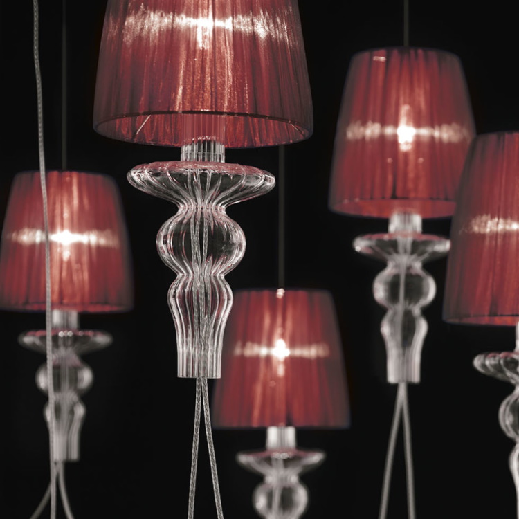 Дизайнерский потолочный торшер Morosini Gadora TE S5 Lampada da Terra Sospesa - это воплощение элегантности, которая присутствует, а не кажется. Подвесные светильники Гадора Лампада да Терра Соспреса - вкус, доведенный до совершенства. Прозрачное стекло в изящных формах только кажется хрупким, на самом деле его прочность достаточно высока. Тонкие прозрачные подвесные цепи надежно удерживают конструкцию, делая светильник Lampada da Terra Sospesa невесомым и будто парящим в воздухе. Легкая органза абажуров пропускает через себя лучи, делая их мягкими, будто свет проходит сквозь воду.
