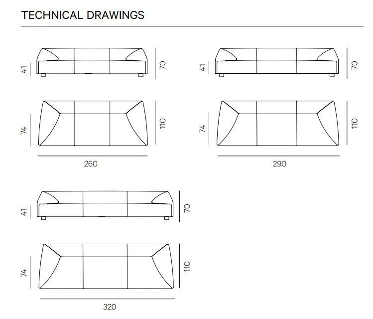 Обивка: Полиуретановый лист T40P, покрытый структурой, с усилением из агломерата 200. Подушка сиденья из полиуретана PF40 с подкладкой из полиуретана T40P, покрытая пуховым одеялом из 100% ткани white duck Gold Label 280 и анти-пуховым одеялом из 100% хлопчатобумажной ткани 210 гр. Подушки спинки и подлокотников T35S.