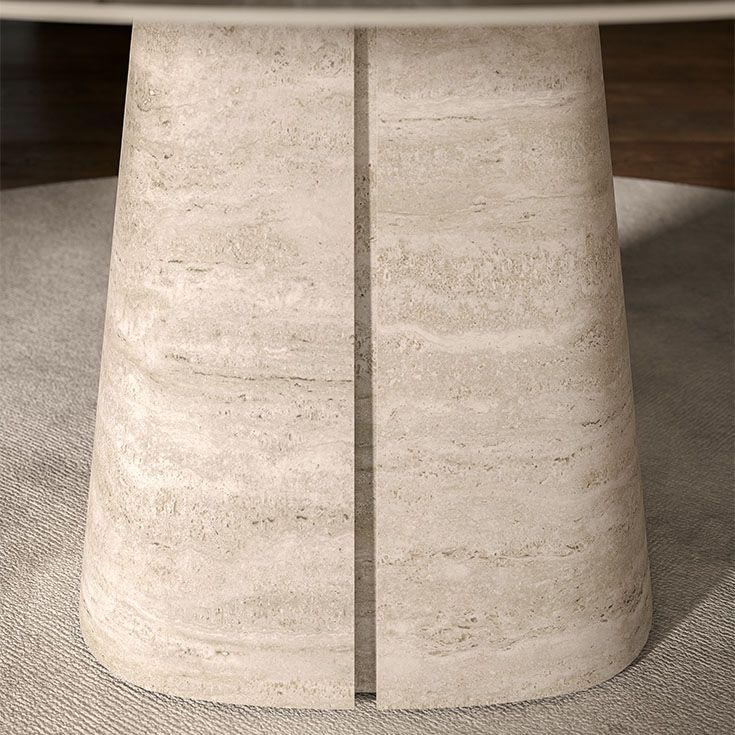 Столы с центральным основанием Rado соединены двумя идеально симметричными ступицами. На короткой стороне цоколя заметна одна деталь: углубленный вертикальный паз, покрытый керамикой, который нарушает однородную поверхность. В результате получился современный керамический стол, воплощающий новую современную эстетику, сочетающий классическую отделку, вдохновленную натуральным мрамором, с ранее невиданными технологиями производства.