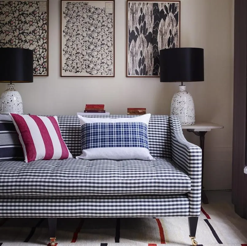 Настольная лампа RIDLEY LAMP. Форма колокольчика с ручной росписью теперь доступна в чистом белом цвете, покрытая резкими, но игривыми черными пятнами .