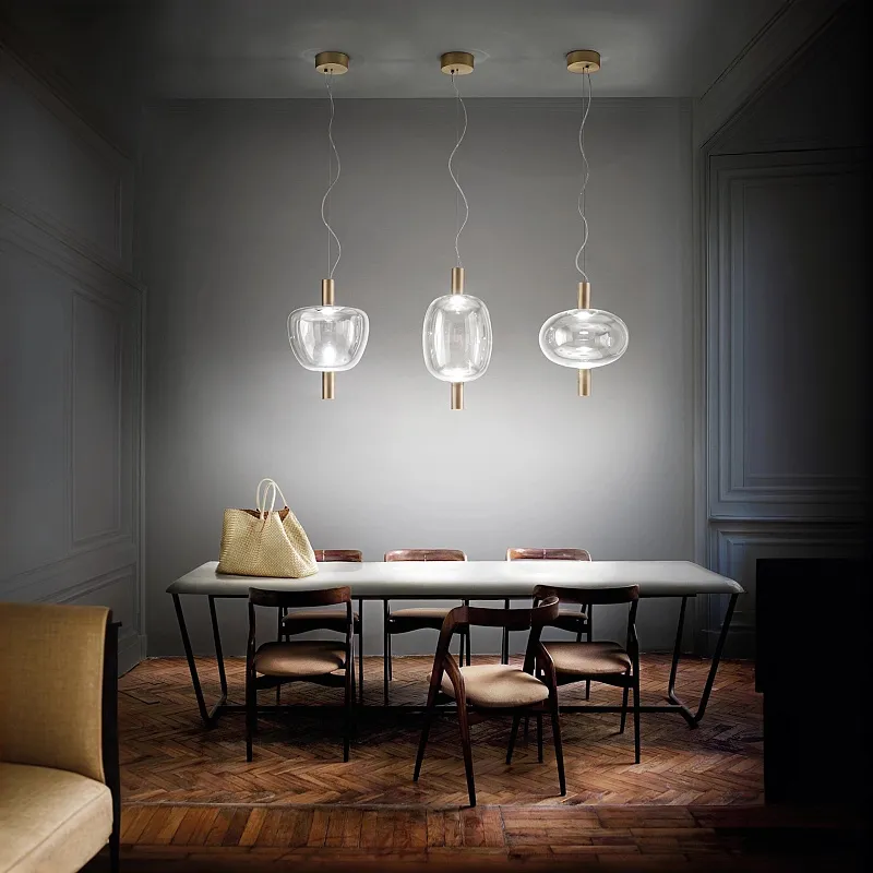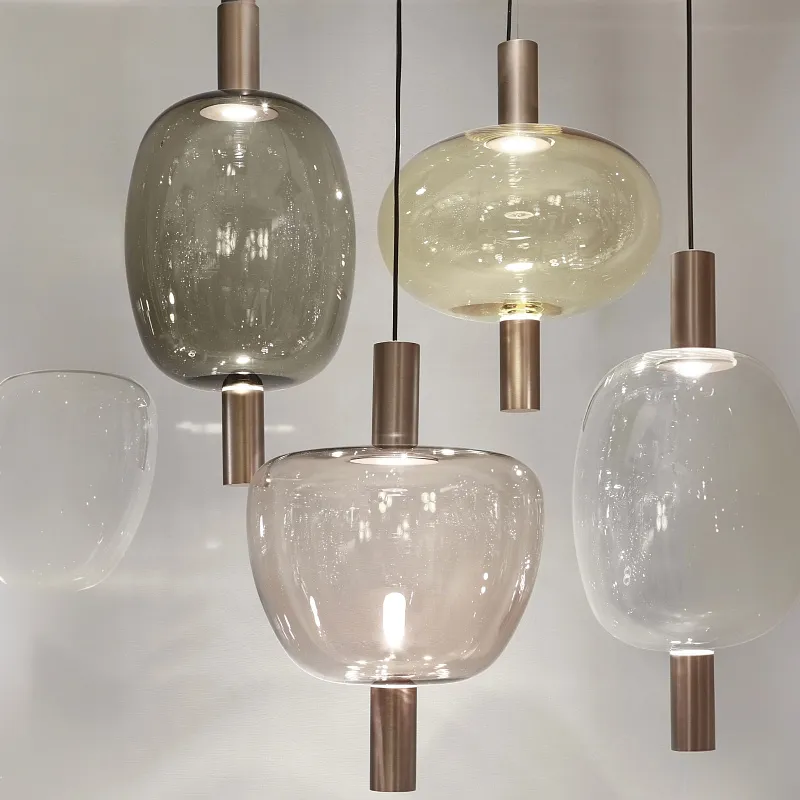 Каким бы ни был цвет стекла (хрустальным, розовым, янтарным или дымчатым), оно практически невидимо и становится простым инструментом для распространения света. Такой результат стал возможен благодаря опыту мастеров-стеклодувов Vistosi, которые с мастерством делают это драгоценное сырье видимым только благодаря отражению света, подчеркивая концепцию простоты и легкости, лежащую в основе концепции коллекции.
