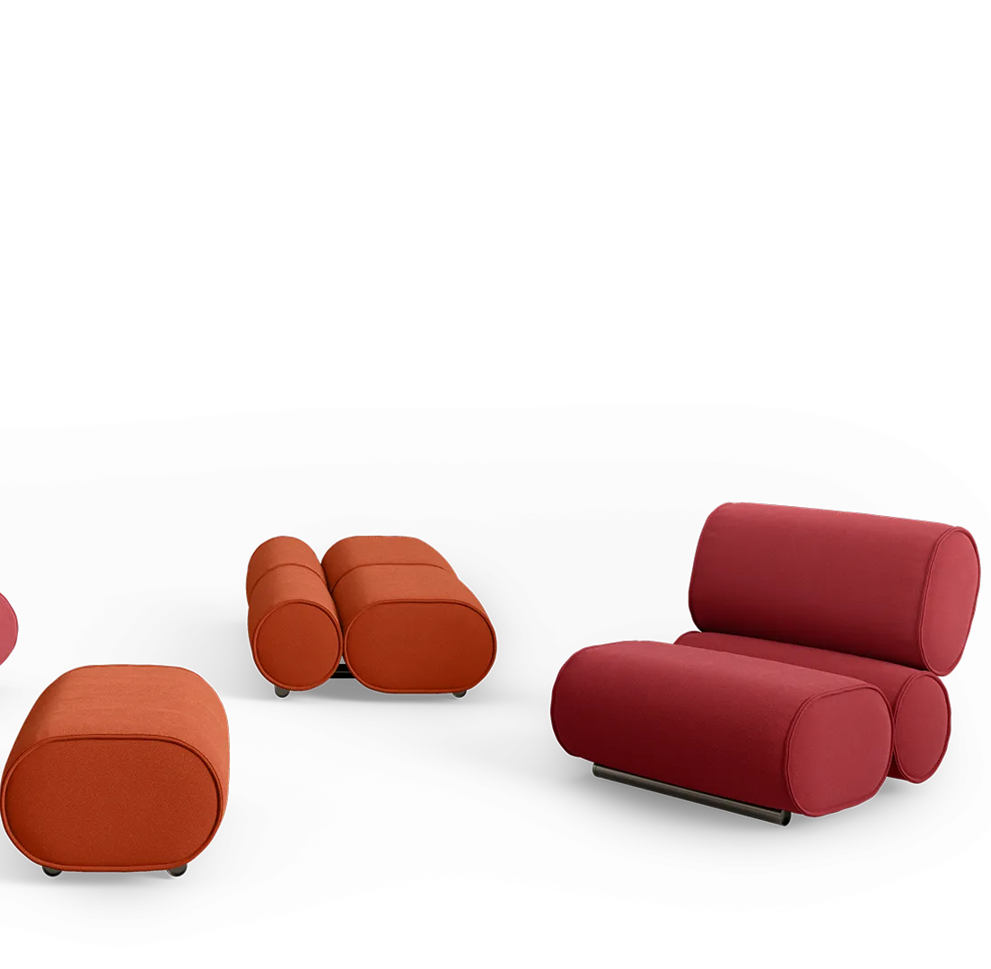 Отличительная черта коллекции Roller - это разделение сиденья на основные графические элементы. В коллекцию входят: кресла, пуфики и шезлонги, которые воплощаются в жизнь из круглых и овальных рулонов, геометрических, скульптурных и рельефных, предназначенных для обеспечения максимального комфорта благодаря использованию полиуретана различной плотности.