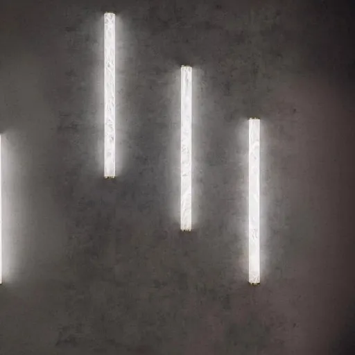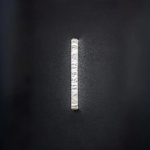 Главной особенностью этого бра является вертикально ориентированный плафон в виде трубки, изготовленный из тонкого, но износостойкого алебастра с характерными контрастными прожилками. Этот материал придает бра изысканный внешний вид и создает уникальный визуальный эффект. Основание бра выполнено из полированного металла, что придает ему дополнительную прочность и элегантность.