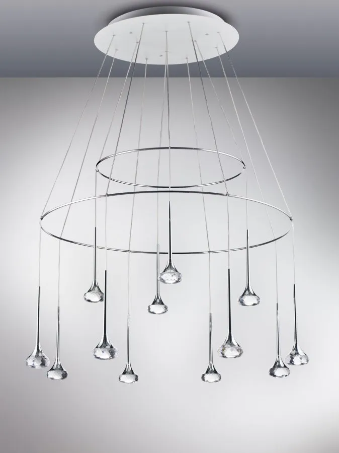 Коллекция состоит из встраиваемых светильников, настенных светильников, потолочных светильников и подвесных светильников с хромированной металлической рамой и стеклянным рассеивателем. Доступен в нескольких цветах и размерах. Встроенный (затемняемый для некоторых версий) светодиодный источник света.