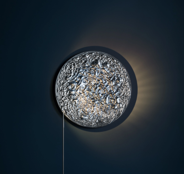 Stchu-Moon отделяет источник света от объекта освещения, который в результате приобретает свои собственные эстетические качества. Свет преломляется на намеренно неровных поверхностях, что увеличивает их количество, придавая всему объекту сияющий вид.