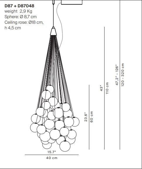Система Stochastic , состоящая из стеклянных сфер, расположенных на разной высоте, позволяет создавать бесконечные комбинации, обладая своего рода контролируемой свободой: каждая сфера соединена с небольшими стальными стержнями разной длины, которые можно прикрепить к конструкции в соответствии с вашими собственными творческими порывами. Источник света – двойной высокоэффективный светодиодный модуль - заключен в сферы, генерирующие теплый непрямой свет, направленный вверх и вниз.
