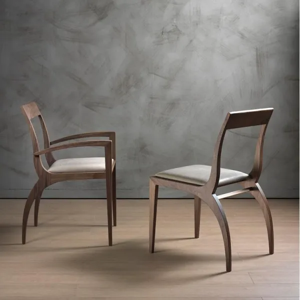 Современный обеденный стул canaletto из орехового дерева, также доступен в варианте "во главе стола". Сиденье с мягкой обивкой и чехлом