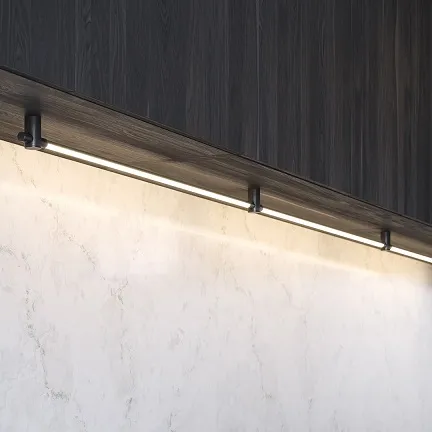 Thin Surface Mount — это изысканный вариант линейного светодиодного освещения. Ультратонкий латунный светильник с магнитными креплениями, c помощью которого можно создавать модульные настенные бра и акцентное освещение. Thin Surface Mount также идеально подходит для освещения шкафа или подсветки предметов.