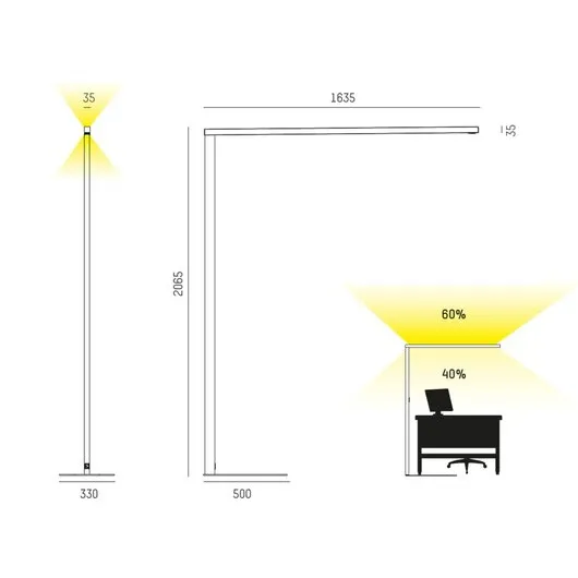 распределение подсветки вверх и вниз 60 на 40 процентов;