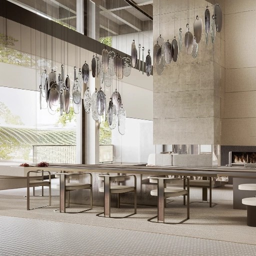 [~PREVIEW_TEXT] => Подвесной светильник Volo из осеребренного стекла с ручной гравировкой.