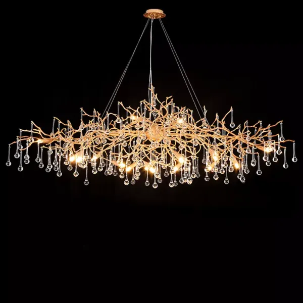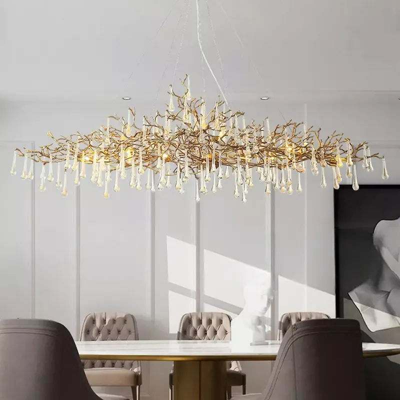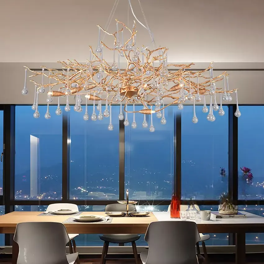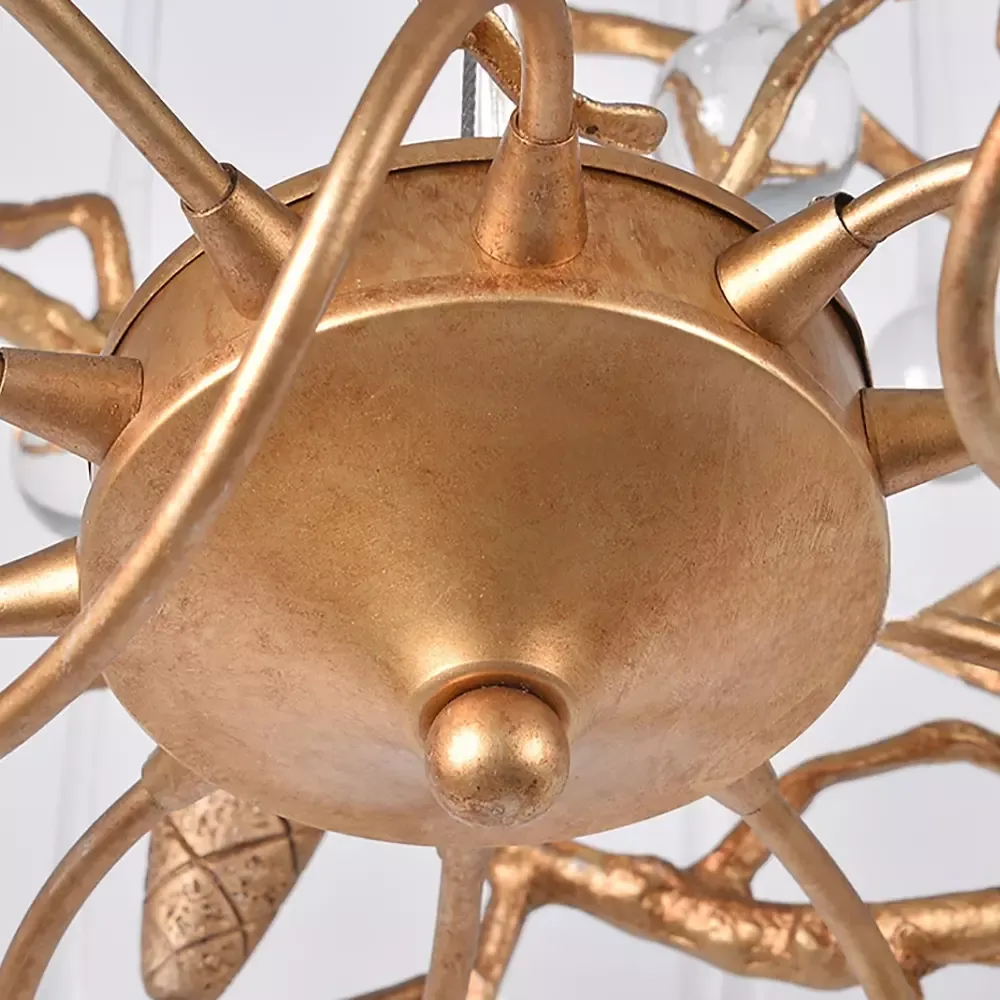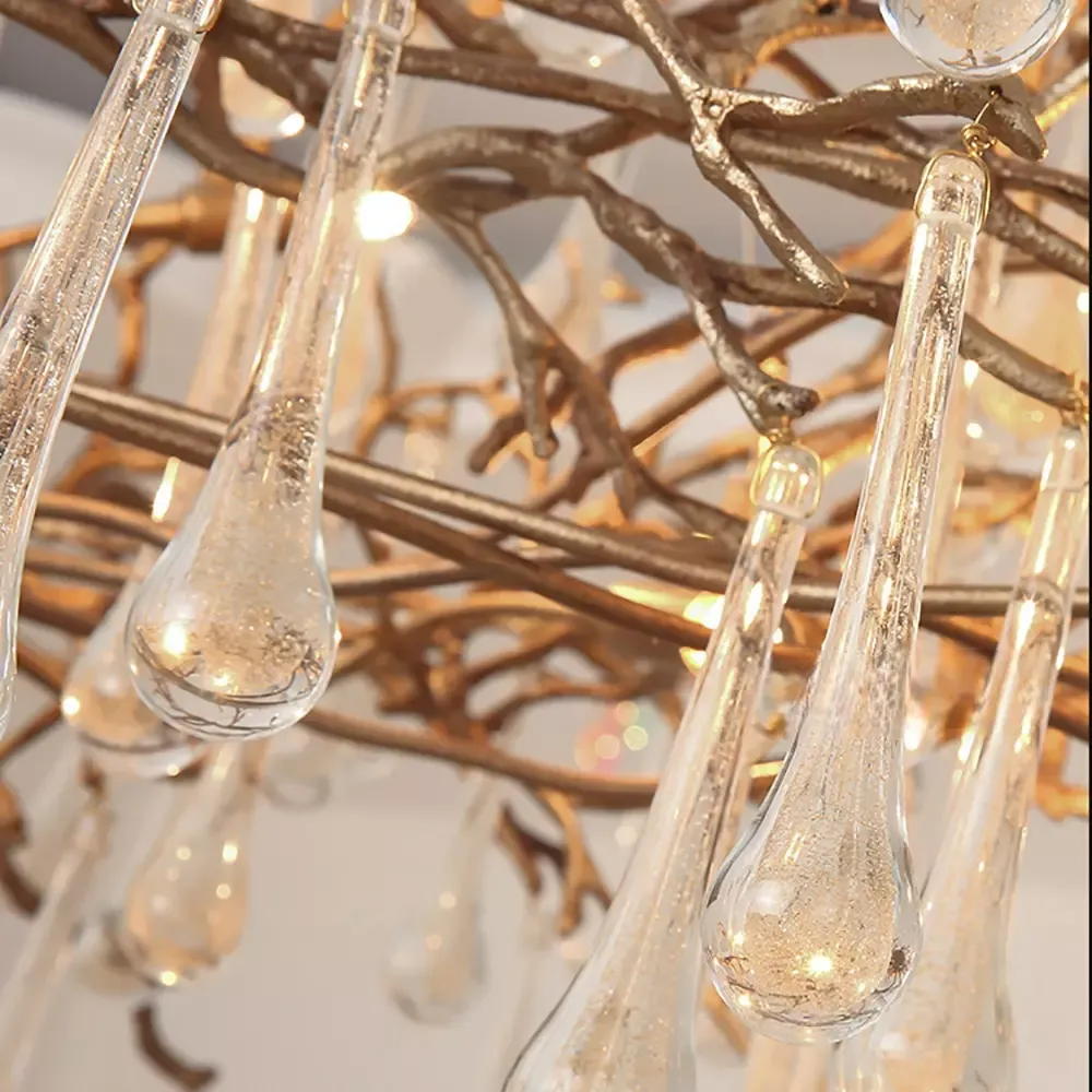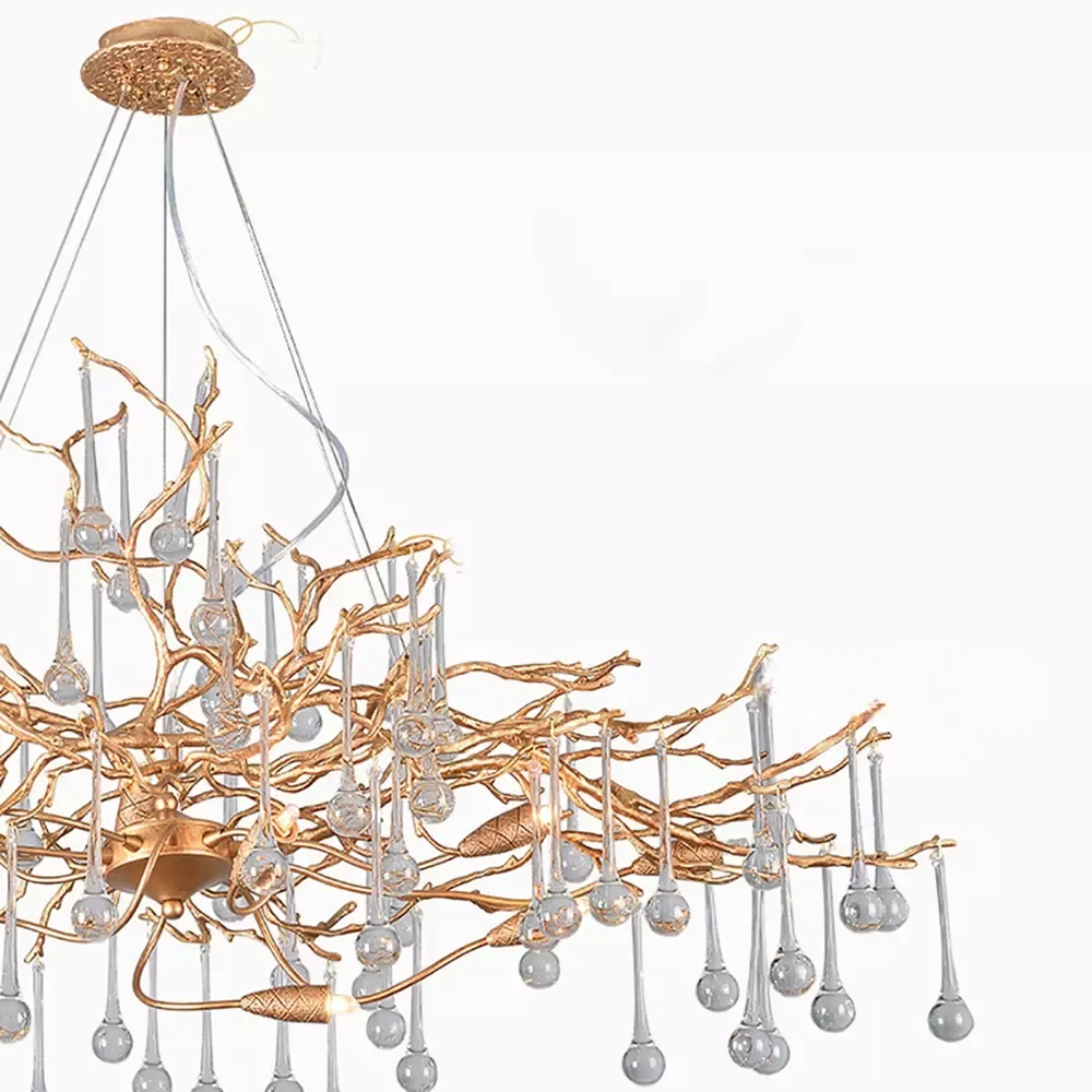 Люстра в стиле лофт из латуни с подвесами из стекла.