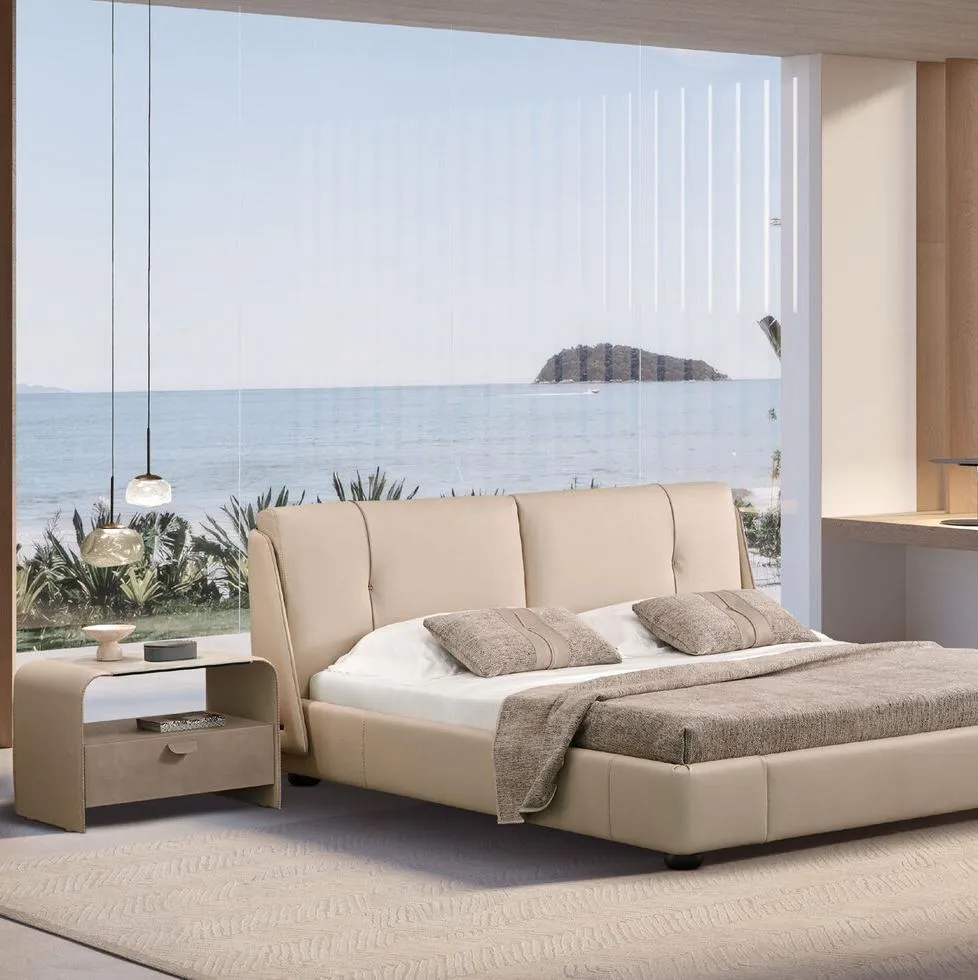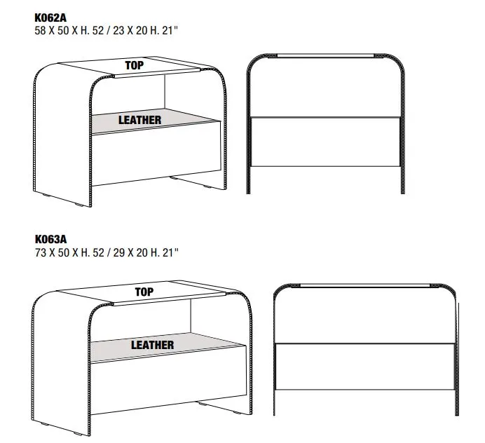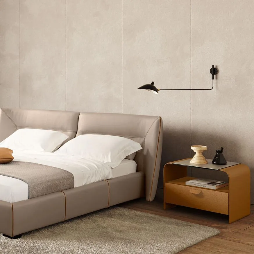Коллекция современных кожаных прикроватных тумбочек, в которых сдержанность и формальный стиль подчеркиваются превосходной портновской отделкой.