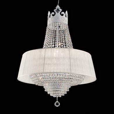 При этом элегантную люстру опоясывает широкий абажур, а завершает композицию великолепная хрустальная подвеска. Светильник Crown смотрится эффектно и требует к себе соответствующего отношения – никак сам Король-Солнце щедро заливает светом интерьер!